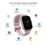 - [Vital, Everyday Features at the Ready] Amazfit GTS 2e smartwatch includes Shortcut Cards and a Quick Access app for fast access to priority information and commonly-used features, customizable alerts, and a rotatable and lockable screen, plus everyday functions like Do Not Disturb, stopwatch, notifications, alarms, weather forecast information etc.