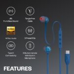 JBL Tune 310 Wired in Ear Type C Headphones, Hi-Res Audio with Digital-to-Analog Converter, 3-Button EQ Preset Remote with Microphone, Tangle-Free Flat Cable, Compatible with USB-C Devices (Open Box)