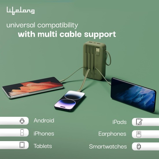 Lifelong ZenCharge 20000 mAh 22.5 W Compact Pocket Size Power Bank with 6 Input/Output Ports (Lithium Polymer, Fast Charging, Quick Charge 3.0 for Mobile, Earbuds,Speaker, Tablet) (Open Box)